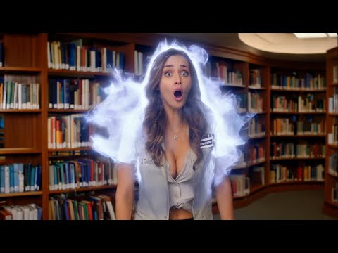 Create a cinematic scene set down a library, The camera begins capturing a swirling transparent teenage demon cloud flying its way through the air. The demon cloud quickly zooms toward the slim attractive librarian named Vanessa, wearing a light but tight librarian outfit and skirt seriously confused as the ghost comes near her. As the ghost sneakily and hastily approaches, Vanessa remains blissfully unaware of the demon ghost’s presence. Use quick, dynamic close-ups to highlight the ghost’s fluid movement and emotional intensity.In a swift motion, the demon ghosts rushes toward her and merges into her. Show her mouth dropping open in shock as the ghost visually and supernaturally merges with and forcibly attaches to and seeps into her face, her eyes, ears, nose and mouth, as her hair blows around. The ghost cloud slips into the woman’s face, entering through the cracks of her body, forcefully slipping into her body and settling within as the Vanessa shakes and jolts internally from the ghost’s power. In that instant, her irises quickly glaze over with an grey otherworldly haze. The irises momentarily shift to a swirling hazy grey, reflecting the dark ghost’s power. This supernatural grey eye glazing lasts just for a second. Then, capture the transition back to normal as her eyes snap back to normal with a jolt of her body, the grey colors immediately fade as she smiles in awe. As the dark ghost’s essence is absorbed into Vanessa, she blushes, and gives an awed smile while playing her hair.