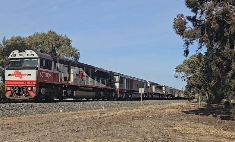 2PM9 SCT up “Dark Ghost” (SCT, CSR, SCT, CSR), Forrestfield to Laverton, 0955, 8/5/25, Horsham VIC